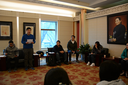带着敬意和感动,高校学子们结合自身的专业知识学习在贵宾厅展开激烈的发言与讨论。与会同学们积极发言,表达出心中的肺腑之感。讲解队的林彦兴同学代表历史志愿讲解队进行了主旨发言,对工合运动提出了自己的见解和看法,展现了一位青年学子对工合运动的崇高敬意和对艾黎的深切爱戴,得到了与会同学的认同。在之后的发言中,杨丹、刘校宏同学进行了补充发言,为沙龙活动提供了师大见解,展现师大风采。最后,这次活动在一片热情的氛围之中圆满结束。