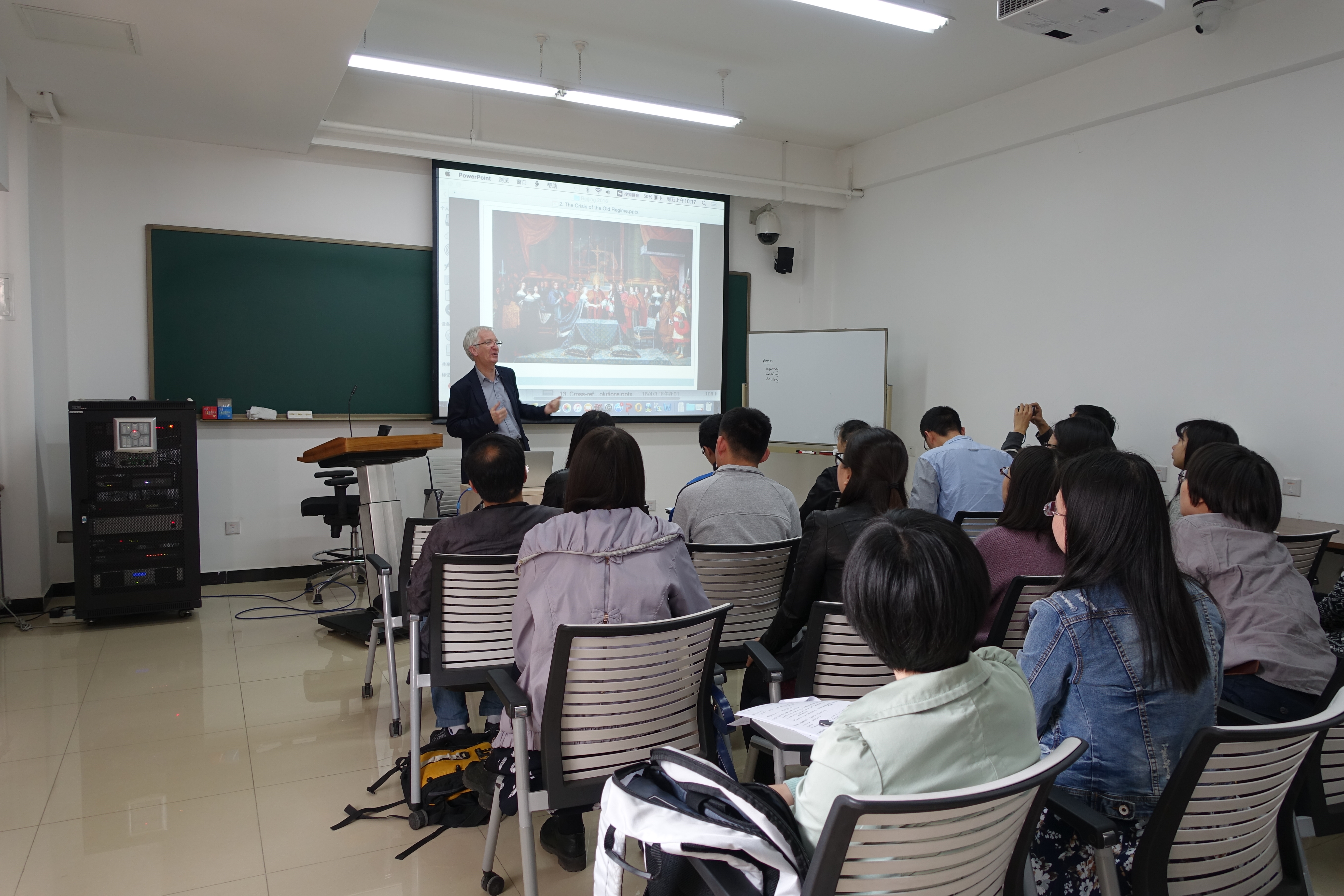此三次课程皆由庞冠群副教授主持,安然副教授、江天岳老师同时出席。前来聆听讲座的还有北京大学、首都师范大学等友校相关专业师生。在授课之余,福瑞斯特教授还与世界近现代史研究中心的各位老师进行了亲切交流。