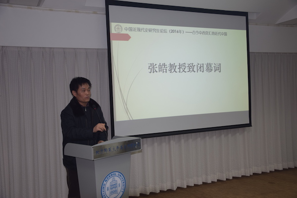 经过一天紧张而热烈的讨论,2016年度中国近现代史研究生论坛于12月7日下午5时举行闭幕式。闭幕式上,bet365体育在线张弘毅、北京大学历史学系李乐、中国社会科学院研究生院肖瑞宁分别代表各自分组做了学术小结,张皓教授致闭幕词。