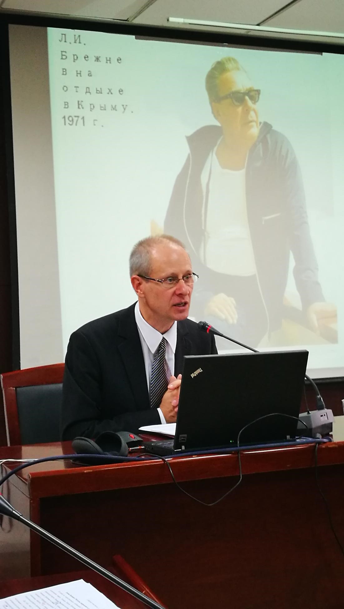 应我院世界近现代史研究中心主任张建华教授邀请,德国汉堡大学东北德意志历史与文化研究所所长维克多.杰恩尼哥豪斯教授,于2016年9月30日下午在主楼600会议室作学术讲座,题目为《勃列日涅夫时代:仪式、神话与权力形象》。