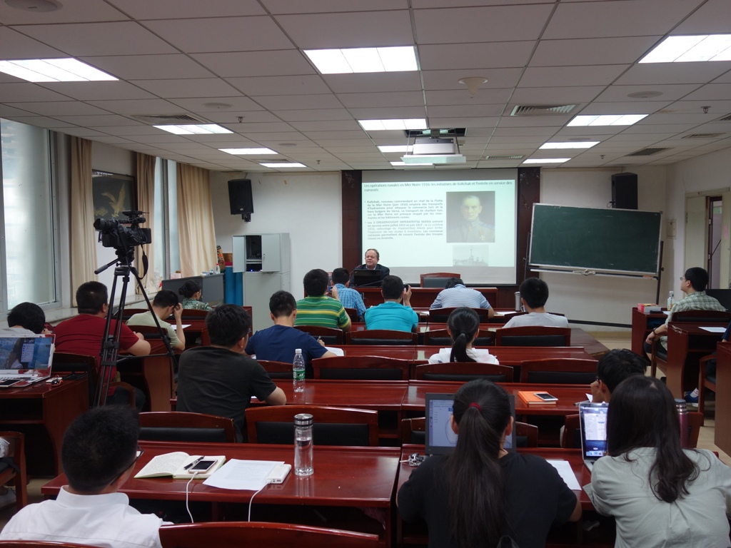 杜普莱教授与我院始终保持着紧密友好的交流关系,已连续七年应邀为我院学生讲学,广受师生好评。2010年9月30日-10月3日,杜普莱教授曾应邀来bet365体育在线讲学,并作了题为《从档案资料看二次鸦片战争中法国海军的活动》的讲座;2011年12月7日,为我院学生作了题为《潜水艇和航空母舰对20世纪国际关系的影响》的讲座;2012年9月24日,为2011级本科学生作了题为《风帆时代的海上力量与国家》的讲座;2013年11月28日,为2012级本科学生作了题为《1897-1914年的英德海军竞赛》的讲座;2014年9月14日,以第一次世界大战爆发一百周年为契机,为我校师生做了题为《第一次世界大战中的法国海军》的专题讲座;2015年12月11日,为2014级本科生作了题为《走向无畏之海——铁甲舰时代的法国海军》的讲座。